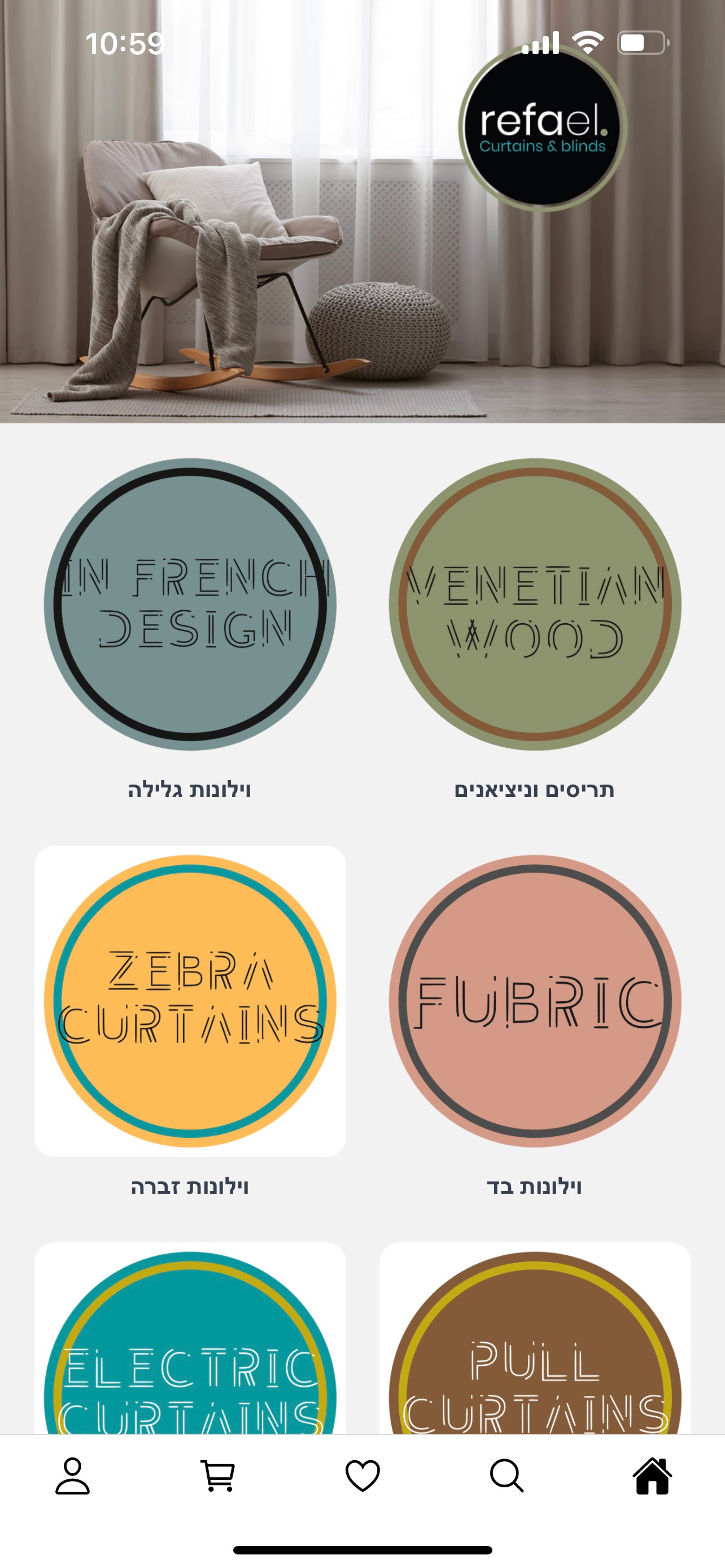 ברוכים הבאים לאפליקציית וילונות רפאל. וילונות רפאל מתמחה בעיצוב וילונות ומוצרי הצללה בהתאמה אישית ובהום סטיילינג לבית ולעסק. לחברתנו מגוון בין הגדולי...