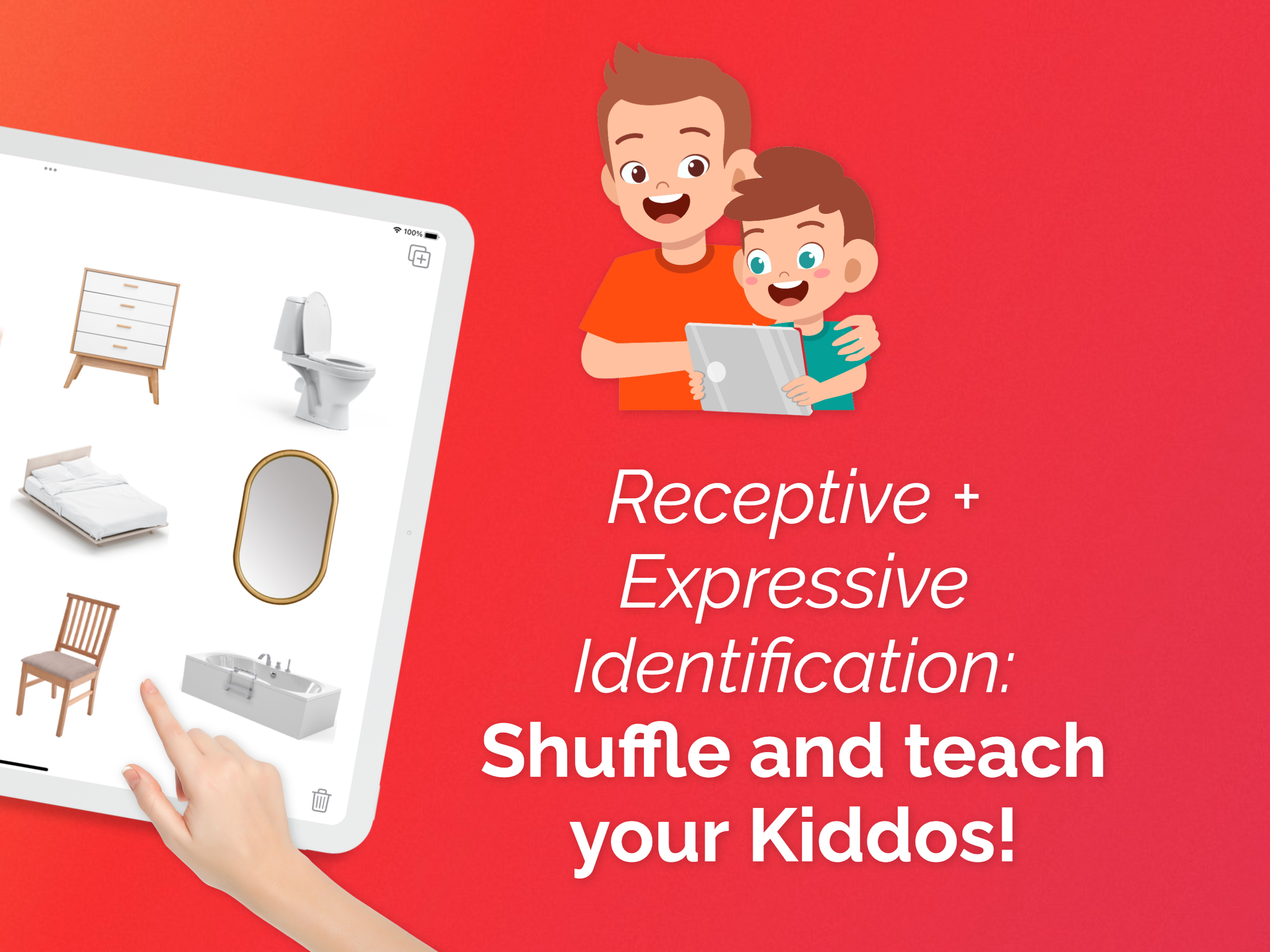"REX", short for "Receptive Expressive ID (identification)", is a purpose-built app intended for use between an adult (parent, teacher, therapist, etc...
