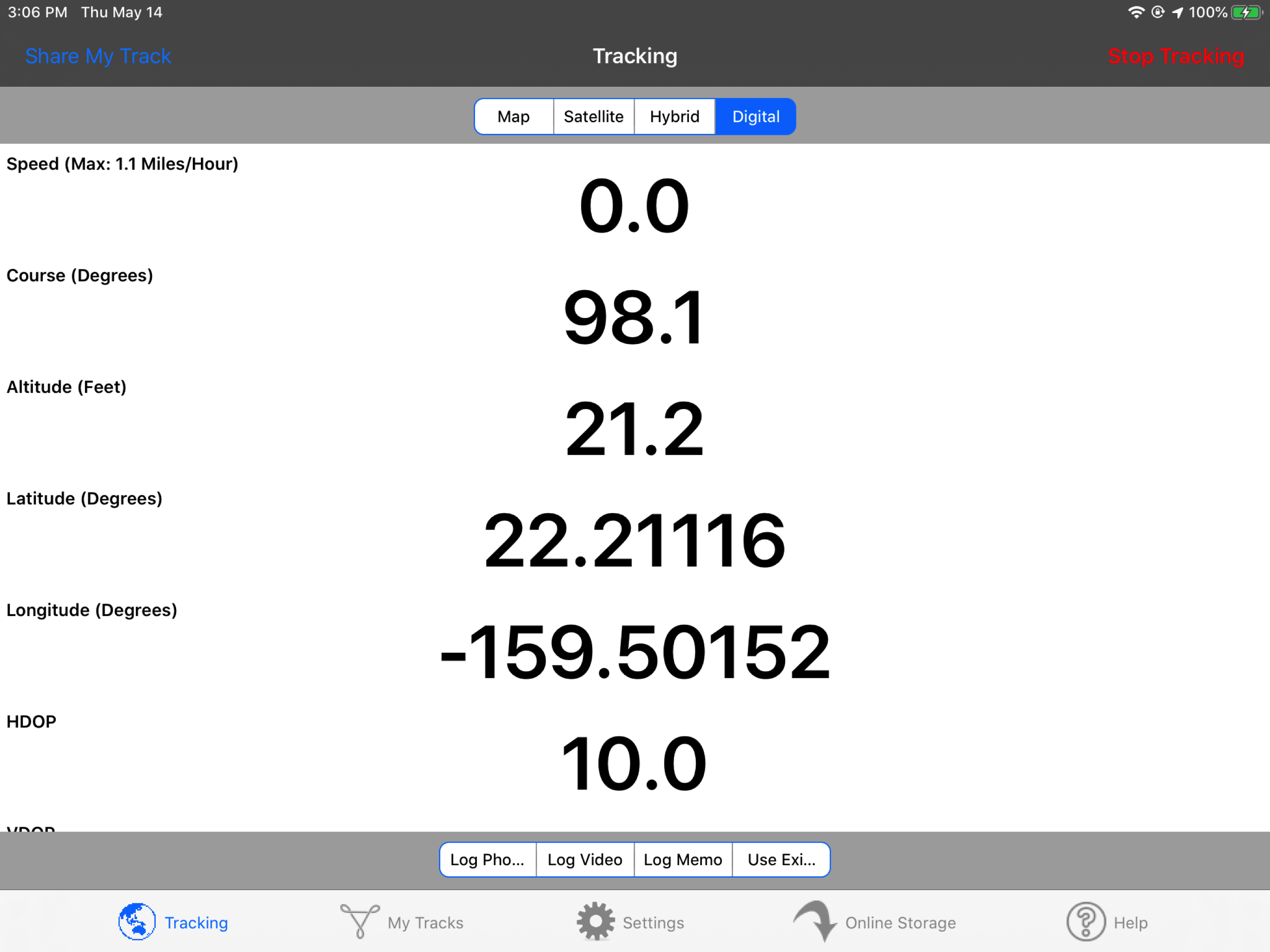 app provides real time display of speed, course, altitude and location, and records tracks, but it lacks a "playback" option to display recorded speed and course. It really needs a graphing feature to display speed and course as a function of time. This would make it much easier to determine where the best wind was on the course, what course provided the best speed overall and best speed made good, and where mistakes were made. It also ought to export this data as a .csv file for data analysis. That is the information I really want to see. The current version of this app allows users to select any point on their track and view their speed and course at that particular point, but provides no means of reviewing the data as a whole. This is very disappointing, and I hope that the functionality is expanded on in the way I have described. It would make the app much more valuable and worthwhile to sailors looking to analyze their performance and improve their speed. Being able to review this information in a race could provide an edge.