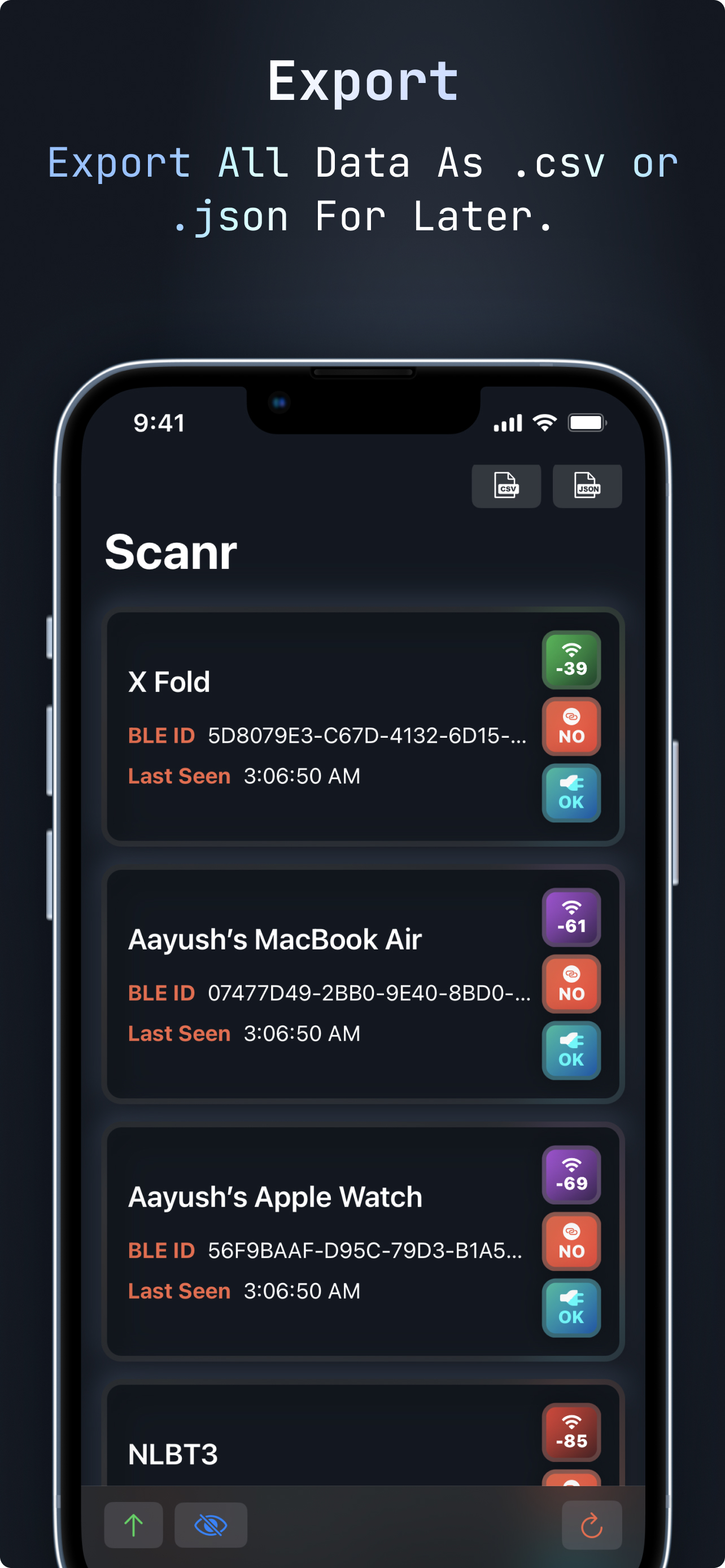 If Want to test your Bluetooths devices strength, See details about certain BLE device or if ever wondered how many bluetooth devices are nearby, Scan...