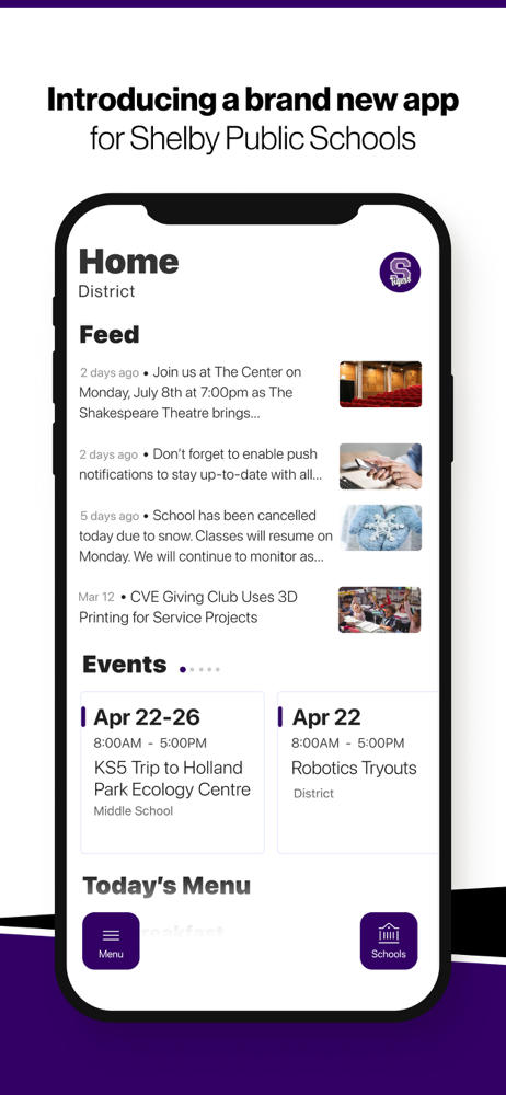 Introducing the brand new app for Shelby Public Schools. NEVER MISS AN EVENT The event section shows a list of events throughout the district...