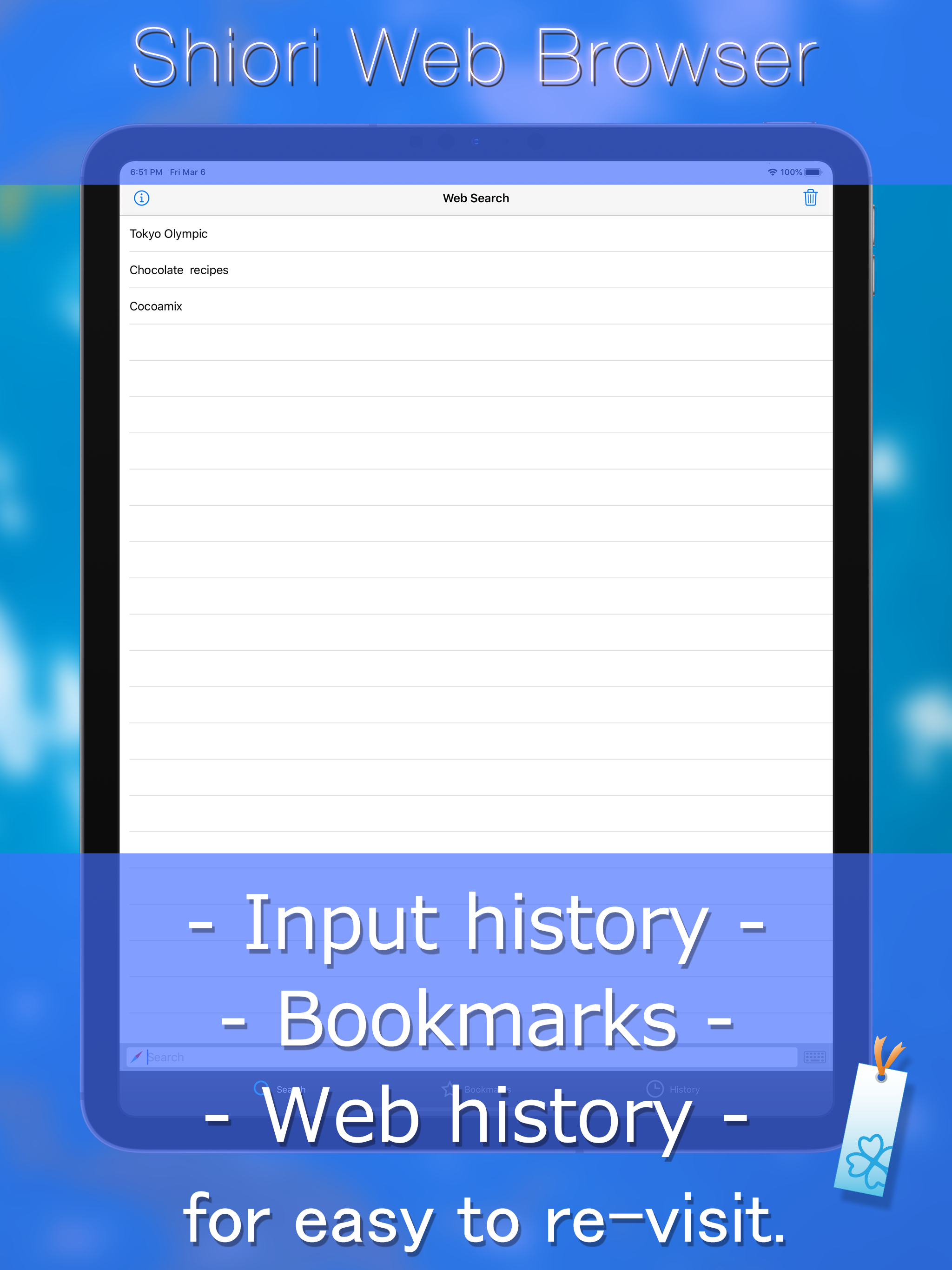 This app is a web browser that starts from the search. โ Simple three steps โ 1. Start the app. ~ Keyboard is automatically displayed. 2. Enter word....