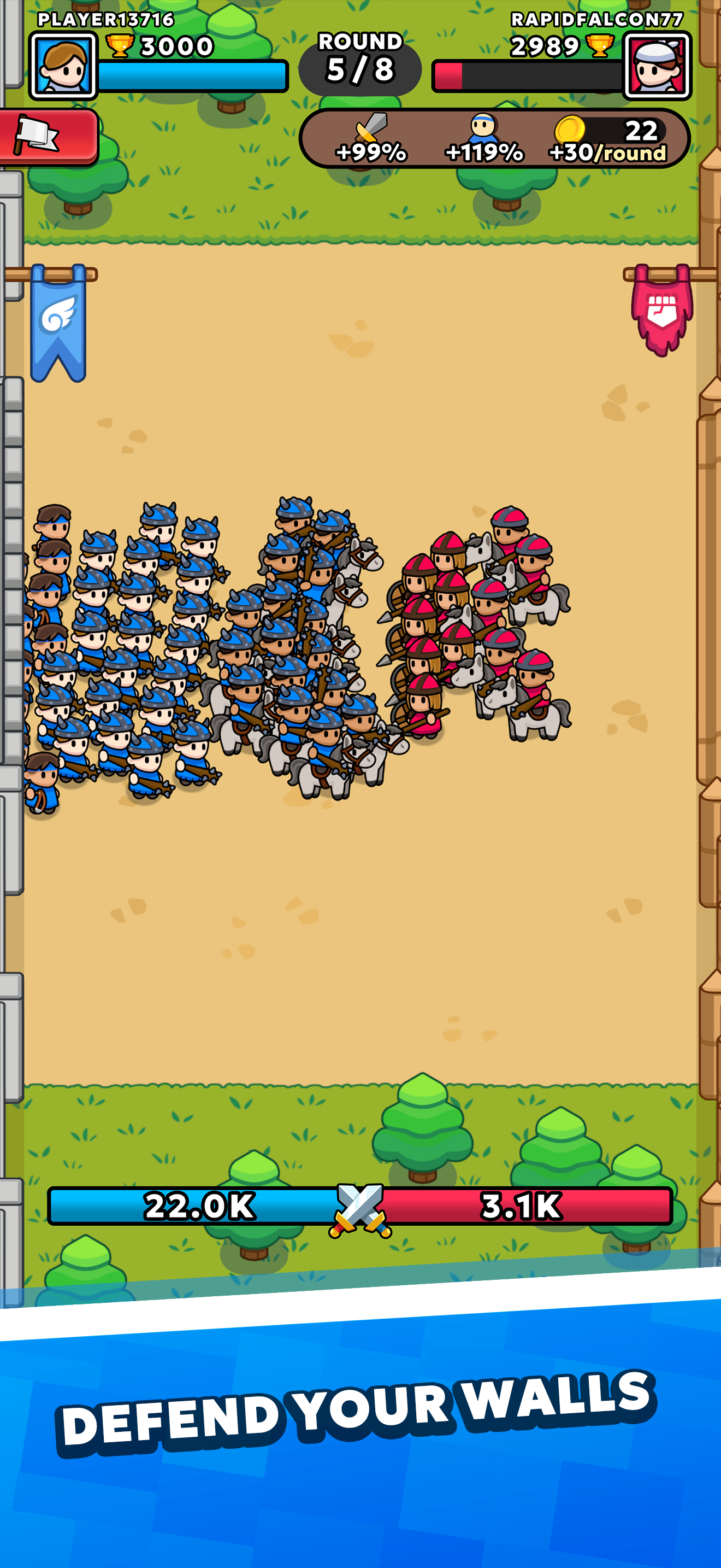 Pretty sure Iโve only gone against AI that only have the purpose of losing against me. But its still a fun game. After playing for a while, I am fairly sure Iโve faced SOME real people. But for the most part, it is AI that is purposefully losing to me. As far as gameplay, it would be more rewarding (and honestly more fun) if the further you got into the match, the closer one of the players got to losing, you got higher leveled buildings in the purchasing area thingy. So that you dont have to constantly make room for level 1 shops and barracks, but sometimes you get level 2, level 3 barracks. It shouldnt spawn the โsuper mergeโ (or whatever its called) and should very rarely the level beneath that. But it should still spawn other than just level 1.