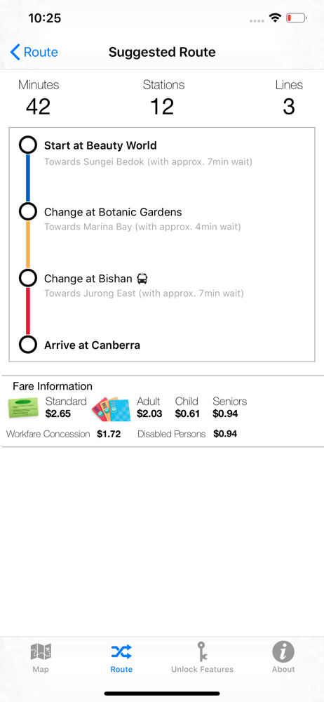 (1) Developer placed Google Ads right in the middle of the map making it nearly useless, then offers a S$1.99 to remove the “pesky” ads. Paying that for an app whose primary function is to replace the FREE paper MRT map available at any station is not a reasonable price to pay. (2) Route calculator function has almost no value as well. Anyone looking at the map can trace a from-to route. If it could give me a route from Chinatown Leong Sang Bakery to Jewel Shopping Center then the calculator has value. Just a station to station trace route not worth the money. S$1.99 indeed.