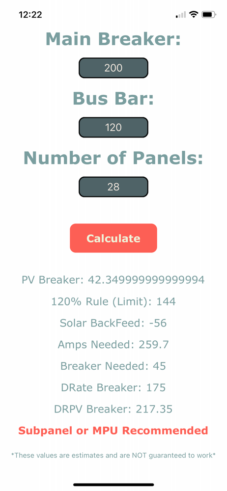 Application designed to allow users to estimate the electrical needs for solar installation based on the customer's current configuration