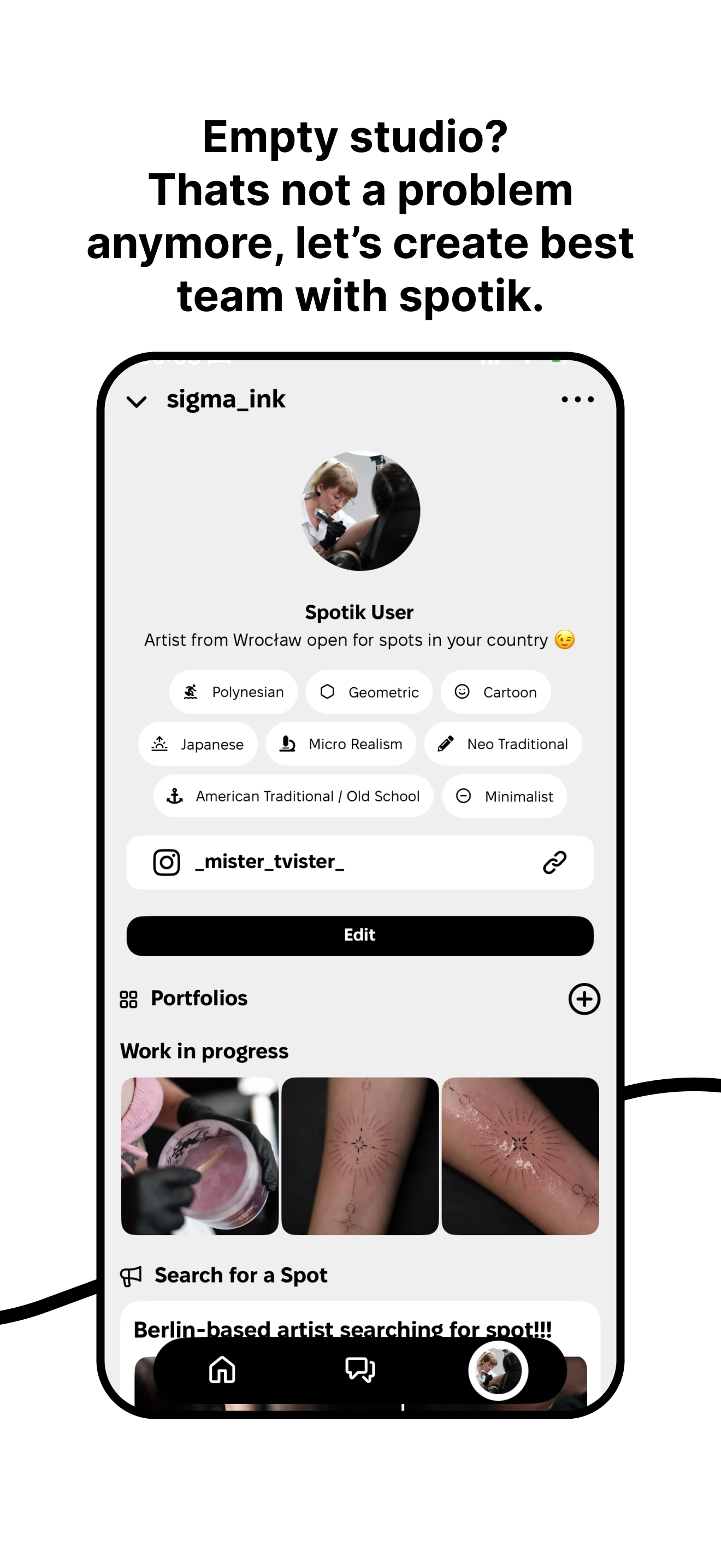 Spotik: Uniting the Tattoo Industry Spotik is designed to bring the tattoo community together, creating a space where studios, artists, and clients c...