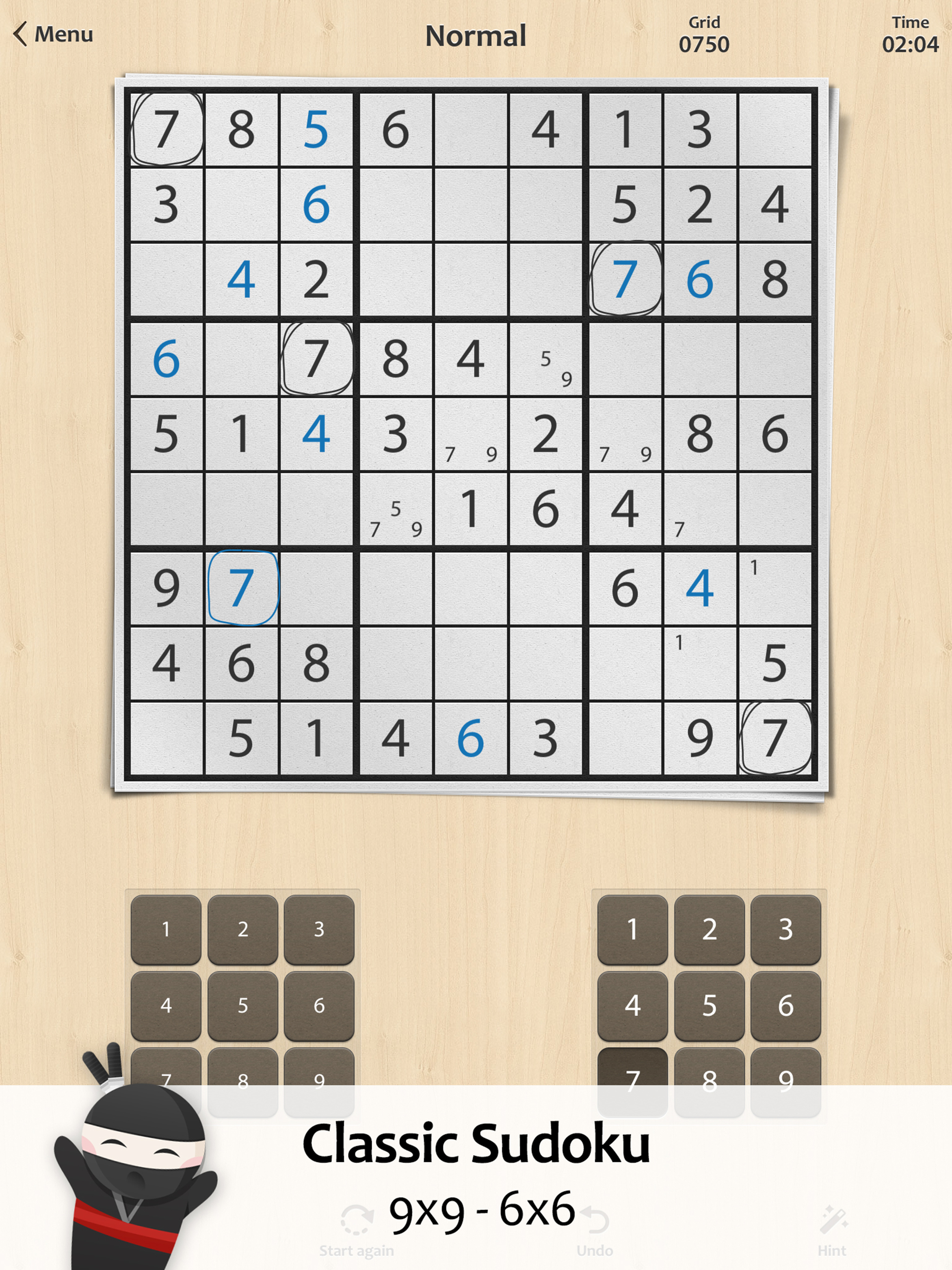 I have played this game on several apps and, by far this is my favorite one! The separate panel for candidates (notes) is most helpful, and the fact that it doesn’t block wrong entries make it much more challenging, and more realistic. I do have one request. I wish it would let you review the completed puzzle when finished before closing the screen. I like to see the completed picture to relish all my hard work - just for a few seconds before moving on. Excellent layout and format is easier on my eyes. Thanks