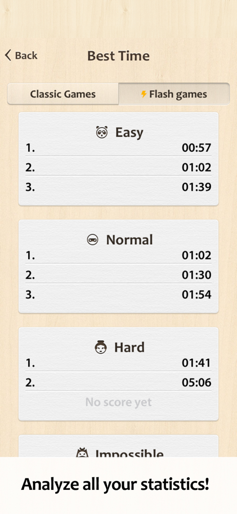 I really like the control scheme that this app offers compared to most other apps I've tried. There is still room for improvement but I've stuck with this version for a few months now. I think the stats should also count games completed in the daily challenge and if you pay for the app the suggested other apps should no longer display on the app at all.