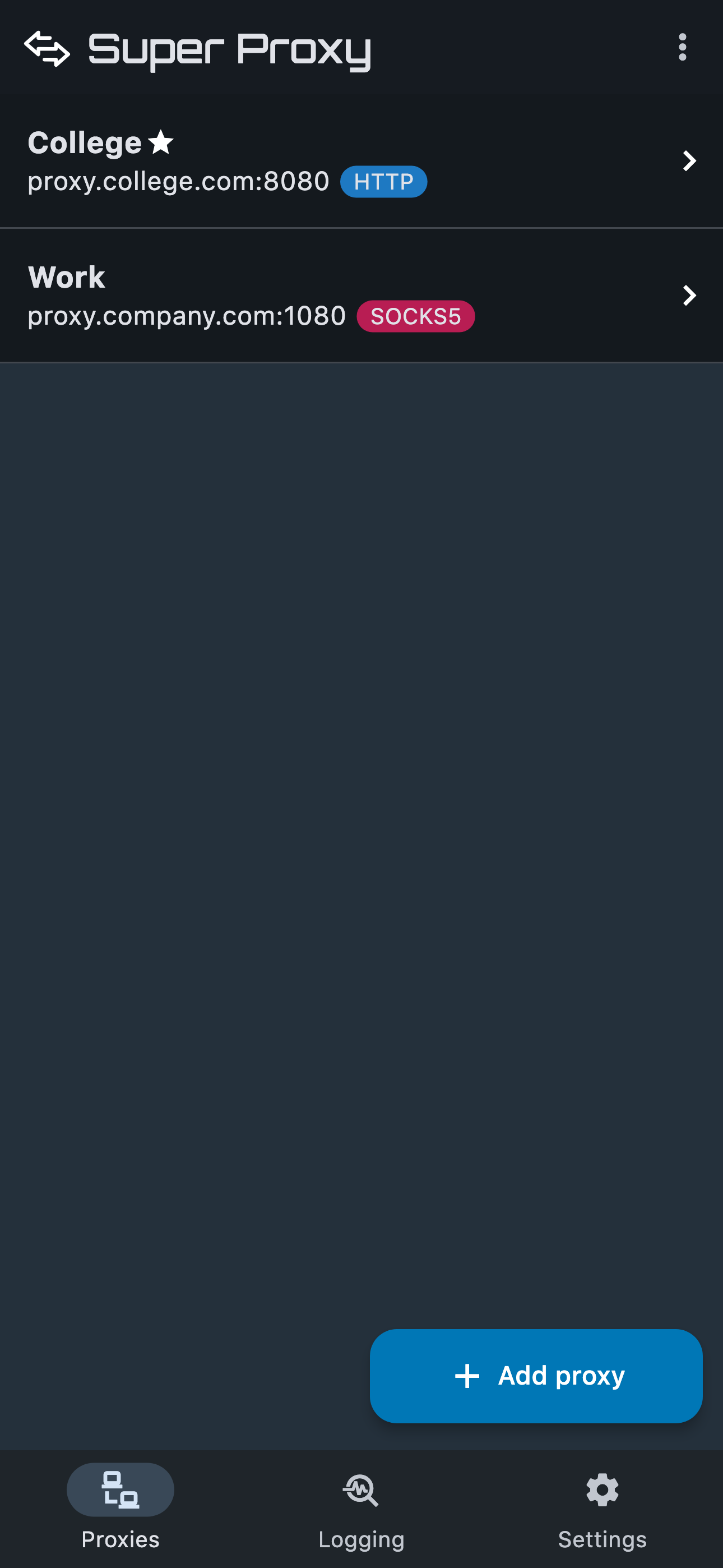 Super Proxy tunnnels all your apps through an HTTP or SOCKS5 proxy server. This enables you to access the internet in every app within your company or...