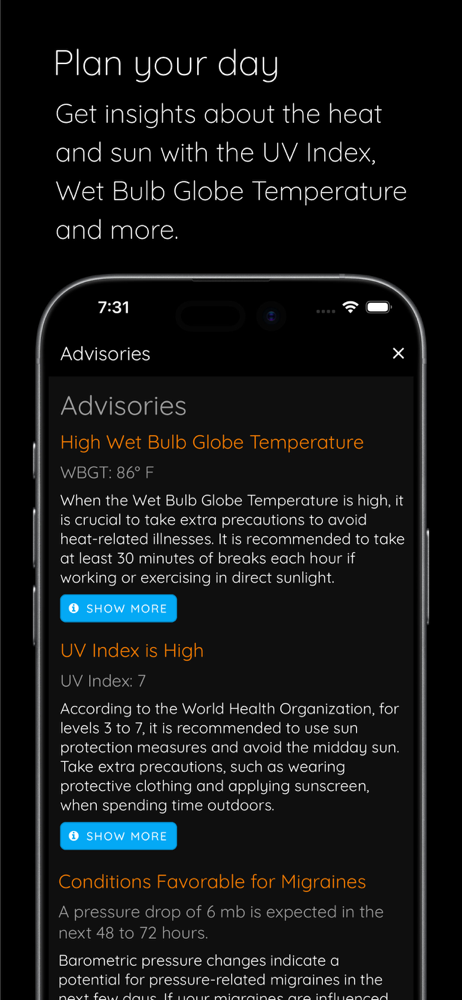 Itโs a must have!! I use it on a daily basis to check my local weather forecasts but I find it great for anyone on the go road traveling or planing their next overseas travel destination. It gives you real time accurate weather forecasts any where and provides advisories for weather conditions that increase migraines. A must for so many!! Check on weather forecasts before you make your next travel plans. Love this wish we had sooner.