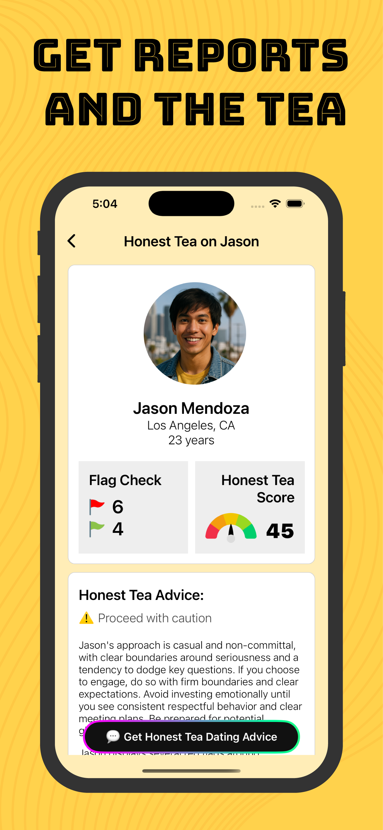 Your AI-powered dating buster. Spill the tea before you swipe right. Worried he might be a cheater? Wondering if his texts mean something or nothing?...