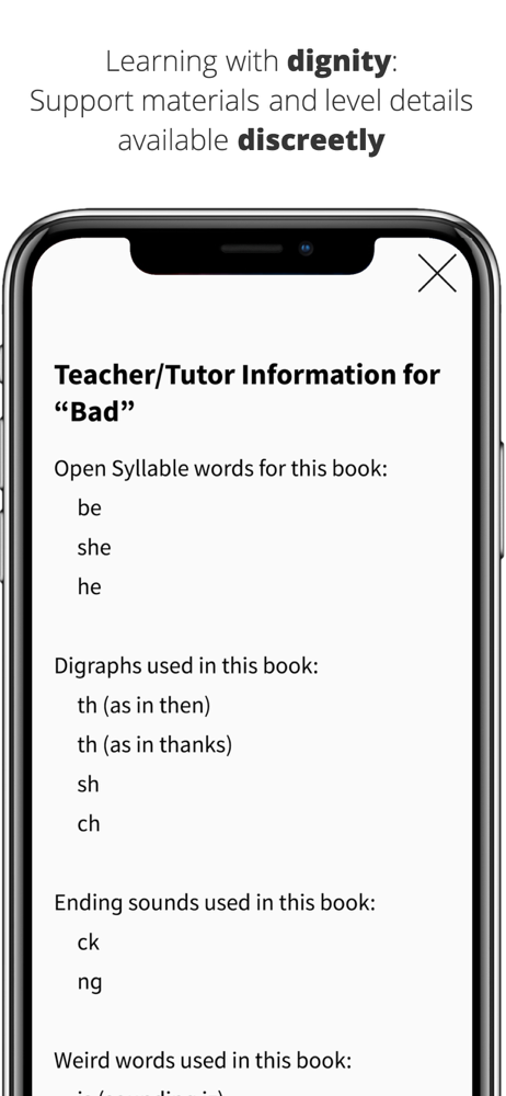 What a great app for teachers & parents of older struggling readers. I can carry every decidable title on my iPad and add another whenever a new skill set comes up in my instructional rotation.