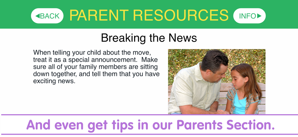 This is an app for families coping with a recent or pending move, which will help teach your child about what to expect when relocating. Make moving...