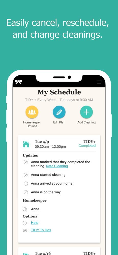 TIDY is a better way to keep your home clean, and it just got even easier with our new TIDY mobile app! At TIDY, each Homekeeper uses a smartphone to...