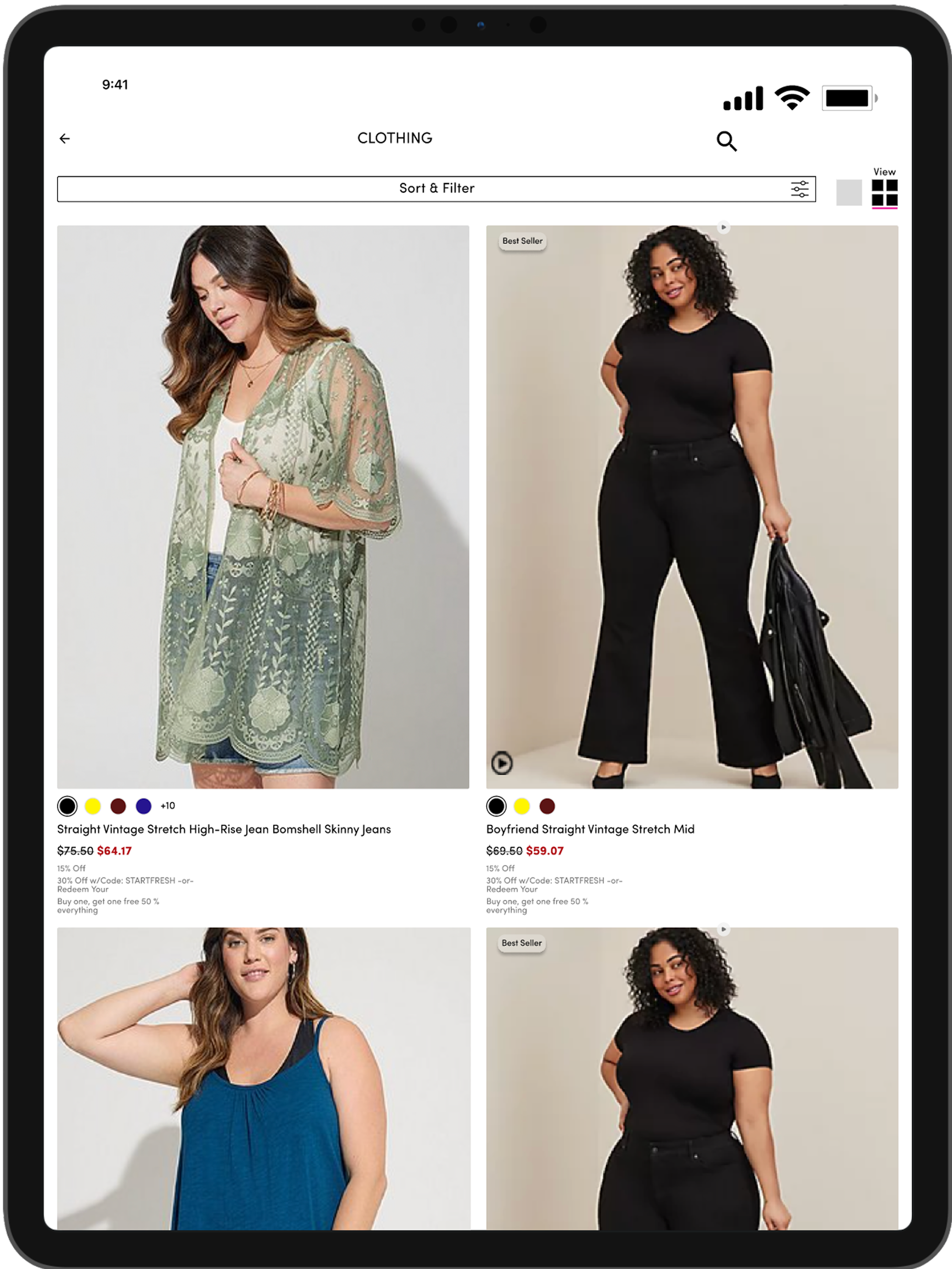 Die hard Torrid fan girl here. Shopped here for years and years, spent god knows how much. Believe me when I say this app is the most frustrating thing ever. If you are the type of person who clicks on the pictures to see them full screen this app isn’t for you. It refuses to load them and it white screens and there is no back button or anything to get out of the loading screen so you have to close he entire app and do your search all over again. Even when I tell myself not to click on the pictures I sometimes hit it while I’m scrolling and have to close the app again. Smh. Also, in the orders tab, if you wanted to look up one of the things you bought, it’s just a list with words. No link to the listing, no picture to indicate which black tee you bought just will say the price and numbers and what not. Dumb that it wouldn’t link to the item listing like every other site. Also, this isn’t a requirement but it would be nice if you could filter down to the exact styles like you can on the torrid website, for example they let you filter down to 3/4 sleeve or sleeveless or whatever you want. Gave 2 stars because I like torrid but it’s just really frustrating when you have to start your search all over when you click on a picture.