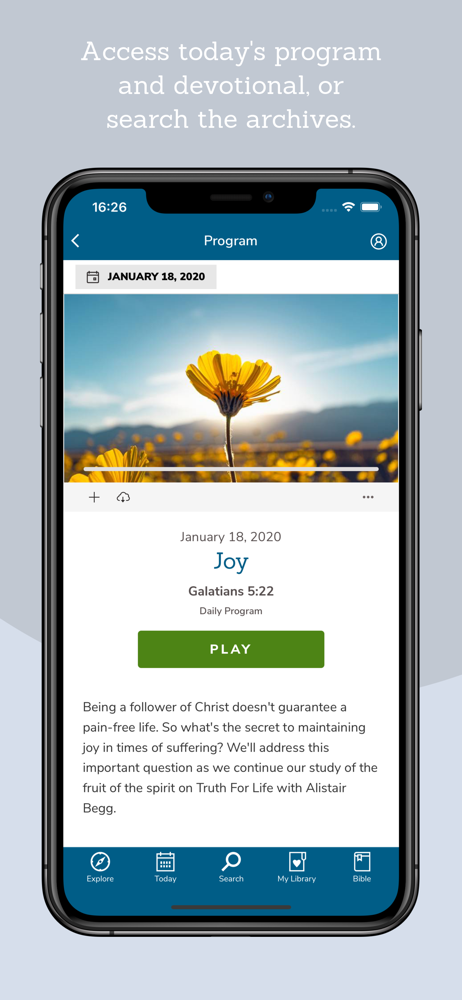 The Truth For Life app brings you daily Bible teaching from Alistair Begg. Learn how to apply God’s Word to your everyday life by listening to the dai...