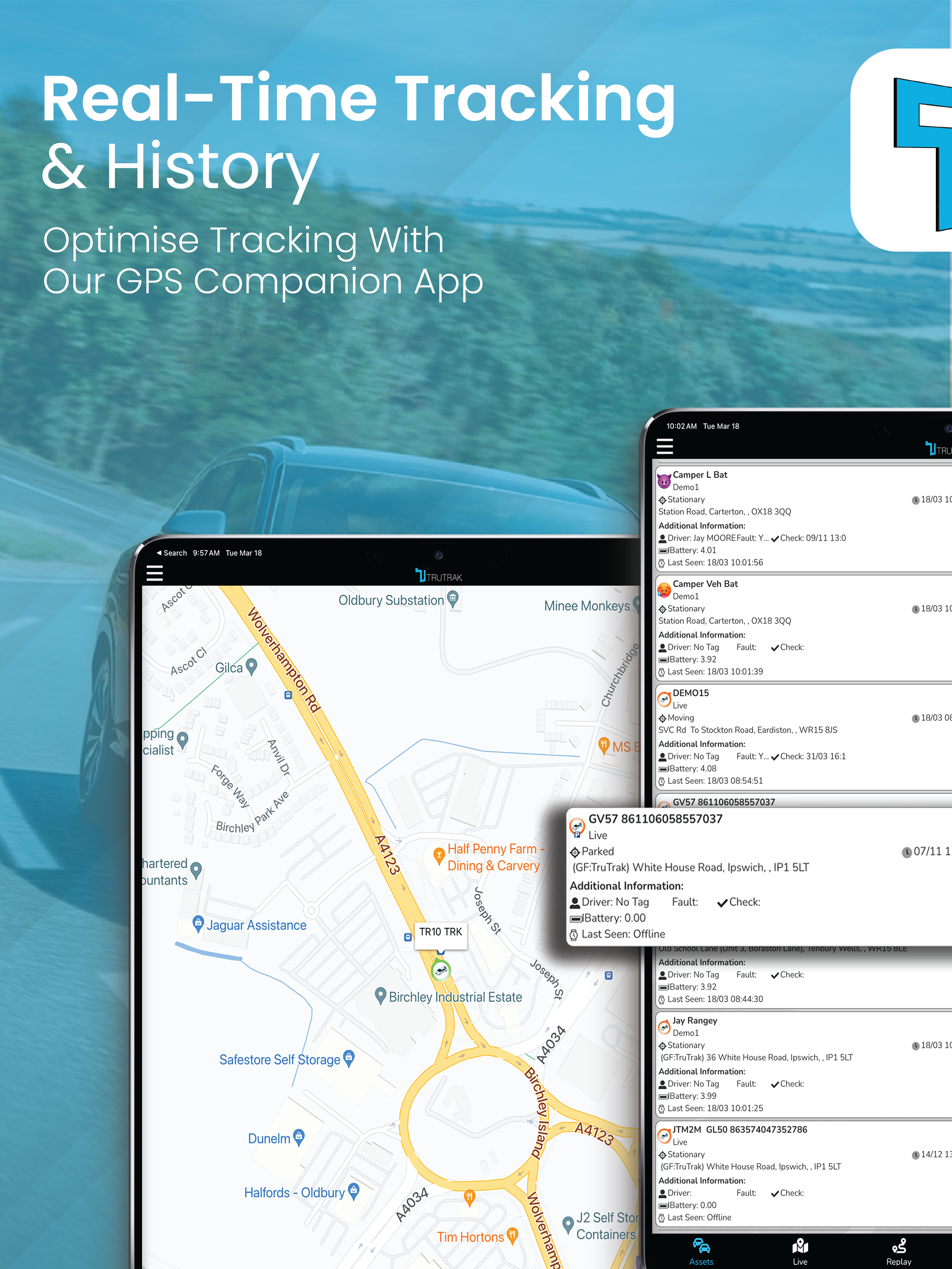 The TruTrak app allows you to track your vehicles live, on the move. By tracking your vehicles with TruTrak, you will be able to monitor staff and ve...