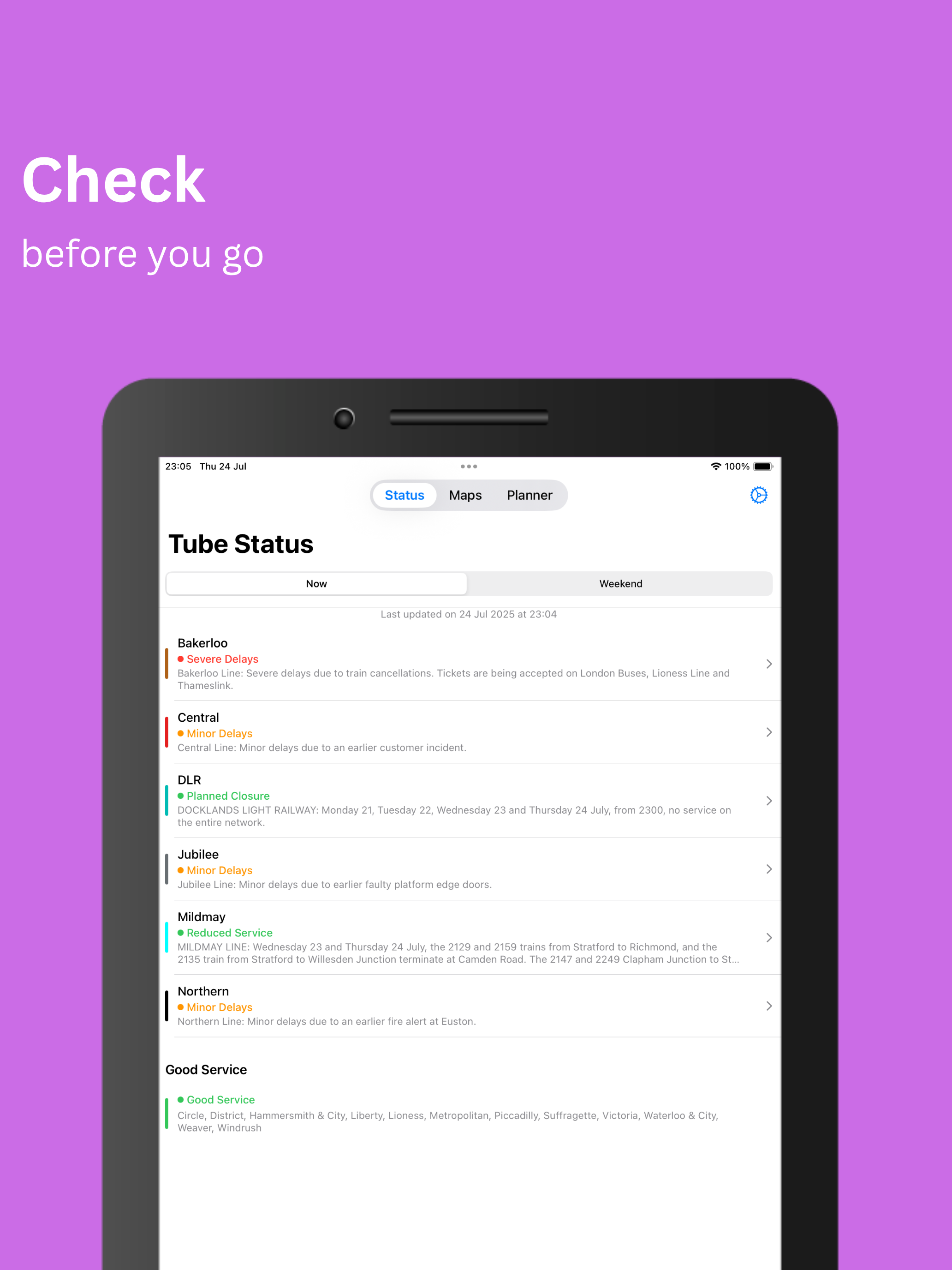 A stylish and simple London Underground planner for helping you get around Greater London. Tube Planner provides the current statuses and planned we...