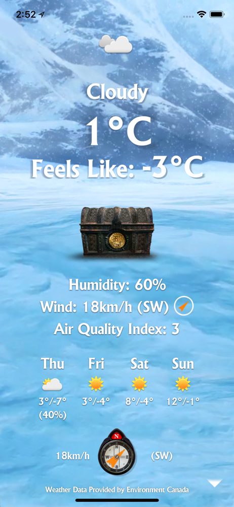 Though I agree with the multiple location settings and wish you could toggle off the alerts, this is a great app. The backgrounds are stunning and the amount of information this app supplies was surprising. The only other thing I think would make the app better is if you could have the temperature tag run the days left on the countdown timer instead. Love the app and it's defiantly worth the tiny $1 fee.