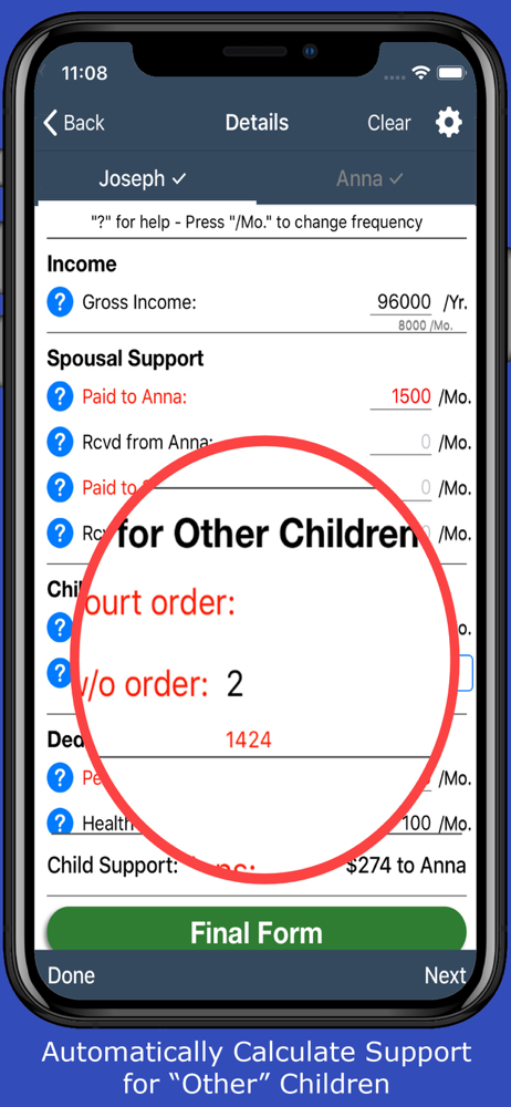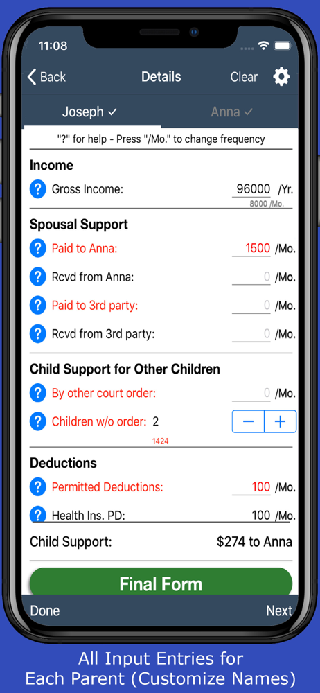This was able to compete exactly what I'm paying right now so I trusted it to help me figure out whether it would be worth the time and money to go back to court based on the actual time my kids spend w me.