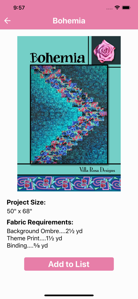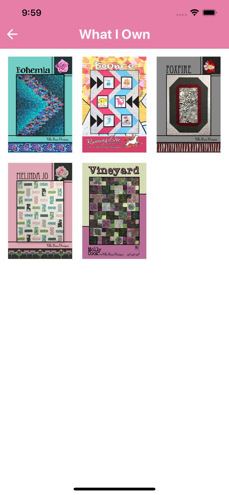 The perfect companion for your Villa Rosa collection! Search and view all Villa Rosa patterns. Make lists - track what you own, sort by fabric requi...