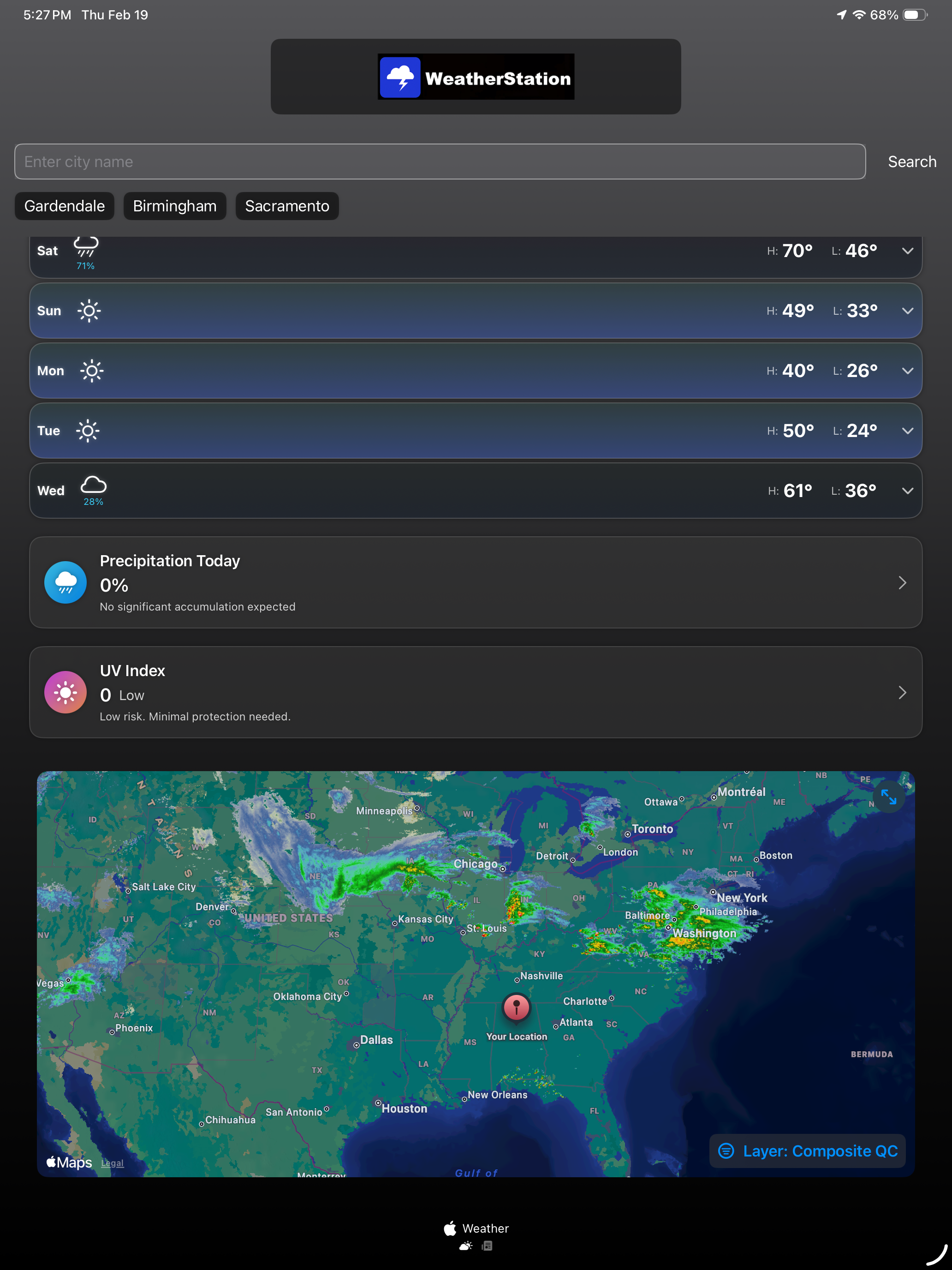 Very good weather app and allows you to see everything you need to see to keep track of the weather for your area and areas around you. 10/10 recommend!