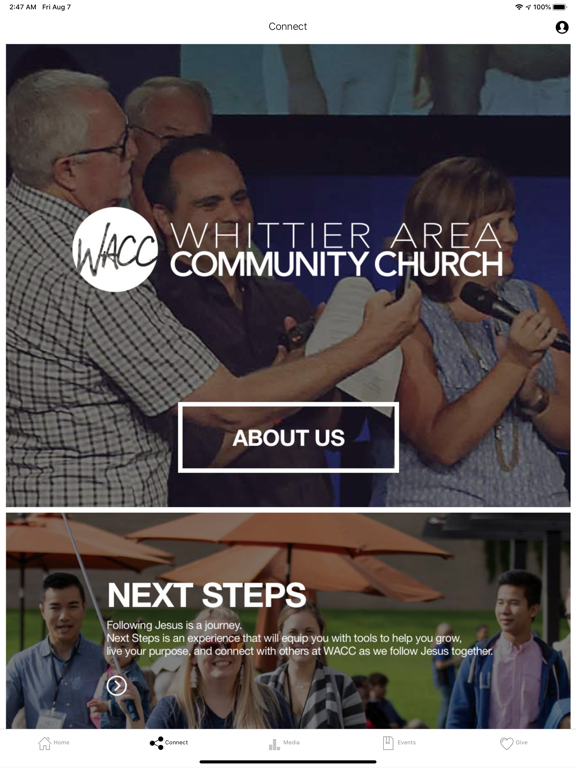 Connect and engage with the Whittier Area Community Church app! You will be able to view upcoming events, give, read the bible, and more!