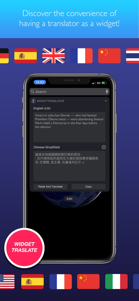 One would think for the cost of this app it would have an automatic language detection, especially since it's a widget! I mean you have to keep going back to the app to switch languages!!!!!! Add that feature it I'll give you five stars.