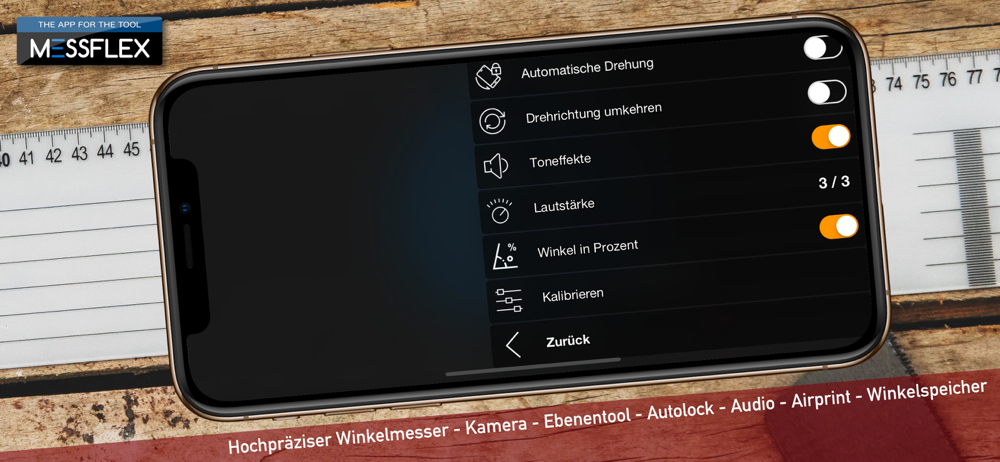 Die offizielle MessFlex-App! Nahtlose Integration mit dem Next Generation Tool für Handwerker. Winkelmesser, Wasserwaage, Ebenentool mit Audiounters...