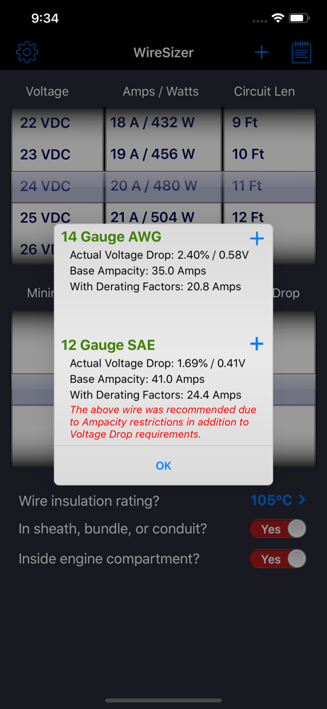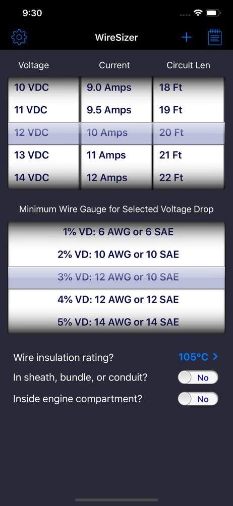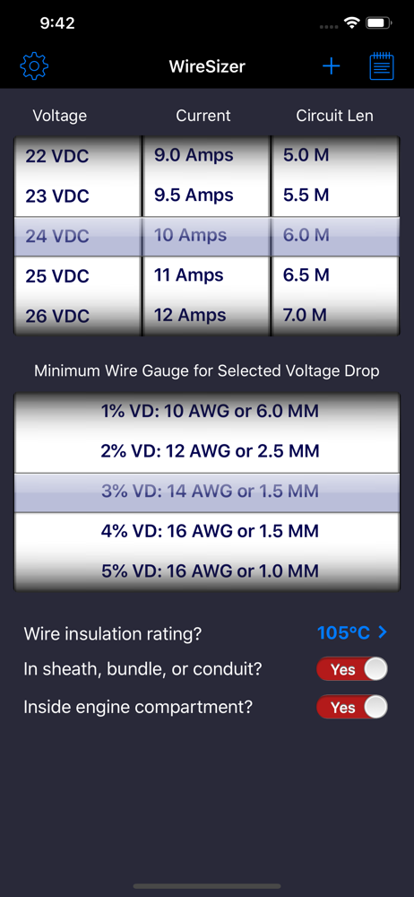 I am a Marine Engineer and I use this app at my desk and in the field to run “how to” calculations to determine the wire size required for a particular voltage, load current and circuit run. The spinner wheels make it very easy to enter the data and the drill down that is available when the results tapped is an excellent bonus. My favorite wire sizing app.