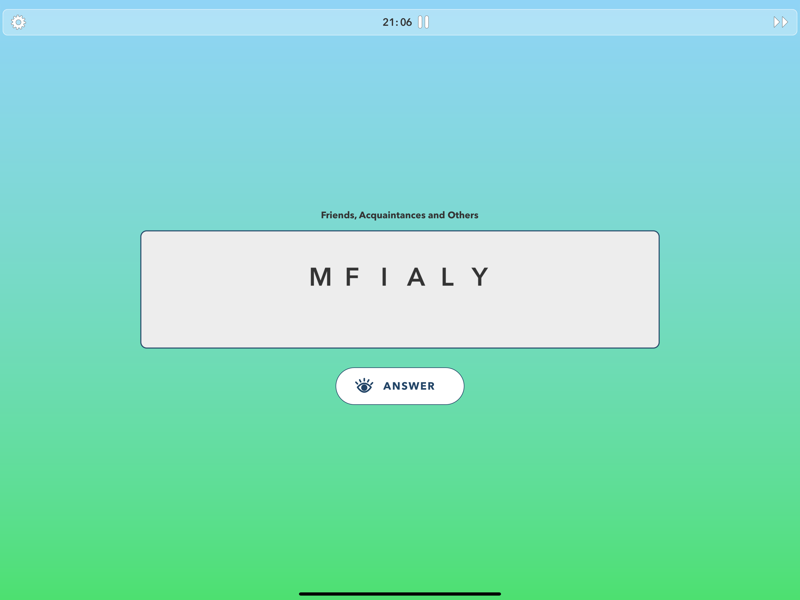 This is really fun. Because of my poor eyesight, it really helps that you color coded the correct answers. Because of my poor eyesight, it does not help when the answer jumps up out at you because it obscures the word. I enjoy this game; my favorite being at the end of each game when I have to figure out the word from the jumbled letters. Thank you.
