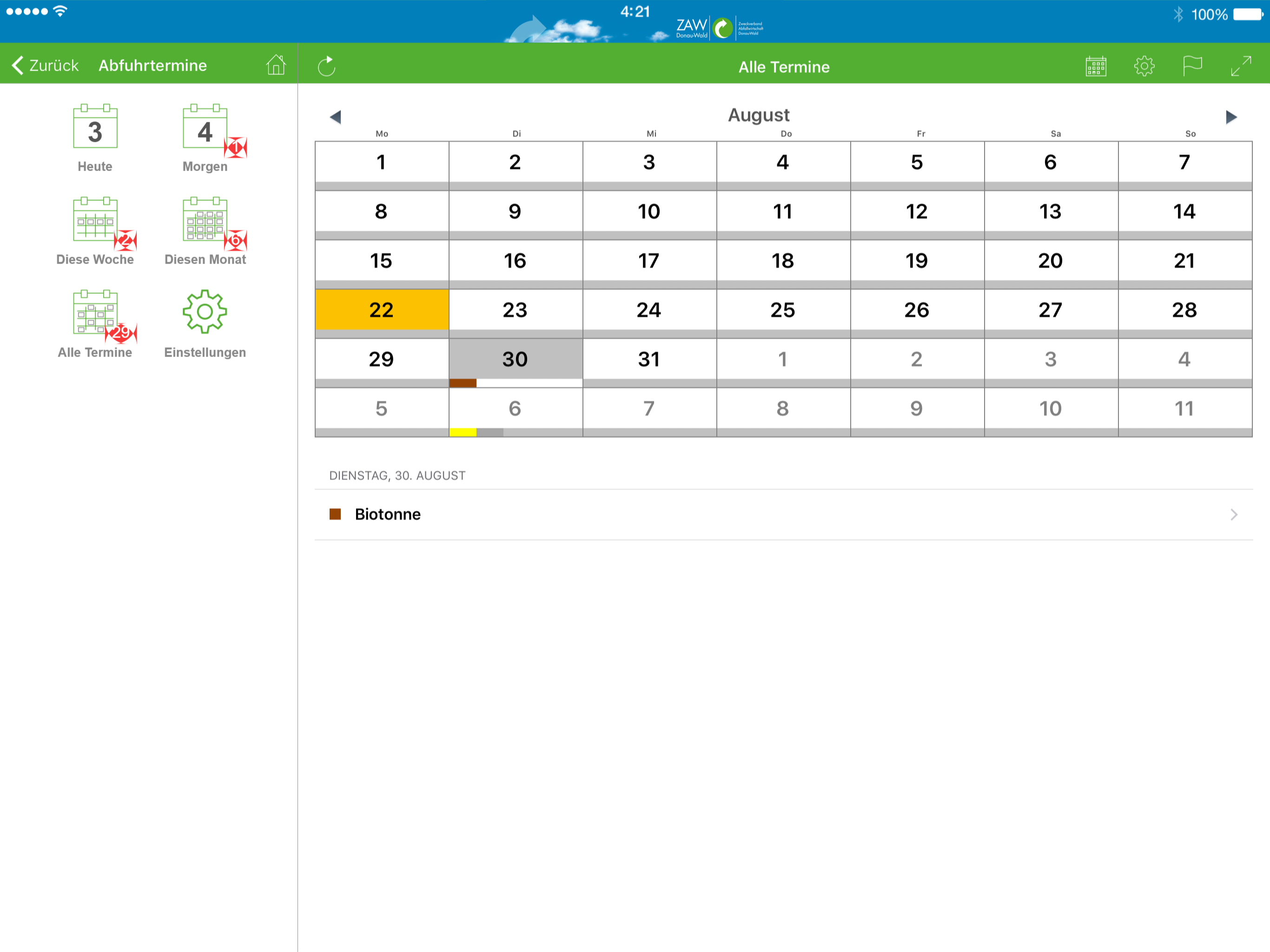 Restmüll, Papier, Bioabfall? Wann wird meine Tonne geleert? Kostenlos, präzise und schnell gibt die App des ZAW Donau-Wald Antwort. Und nicht nur das:...