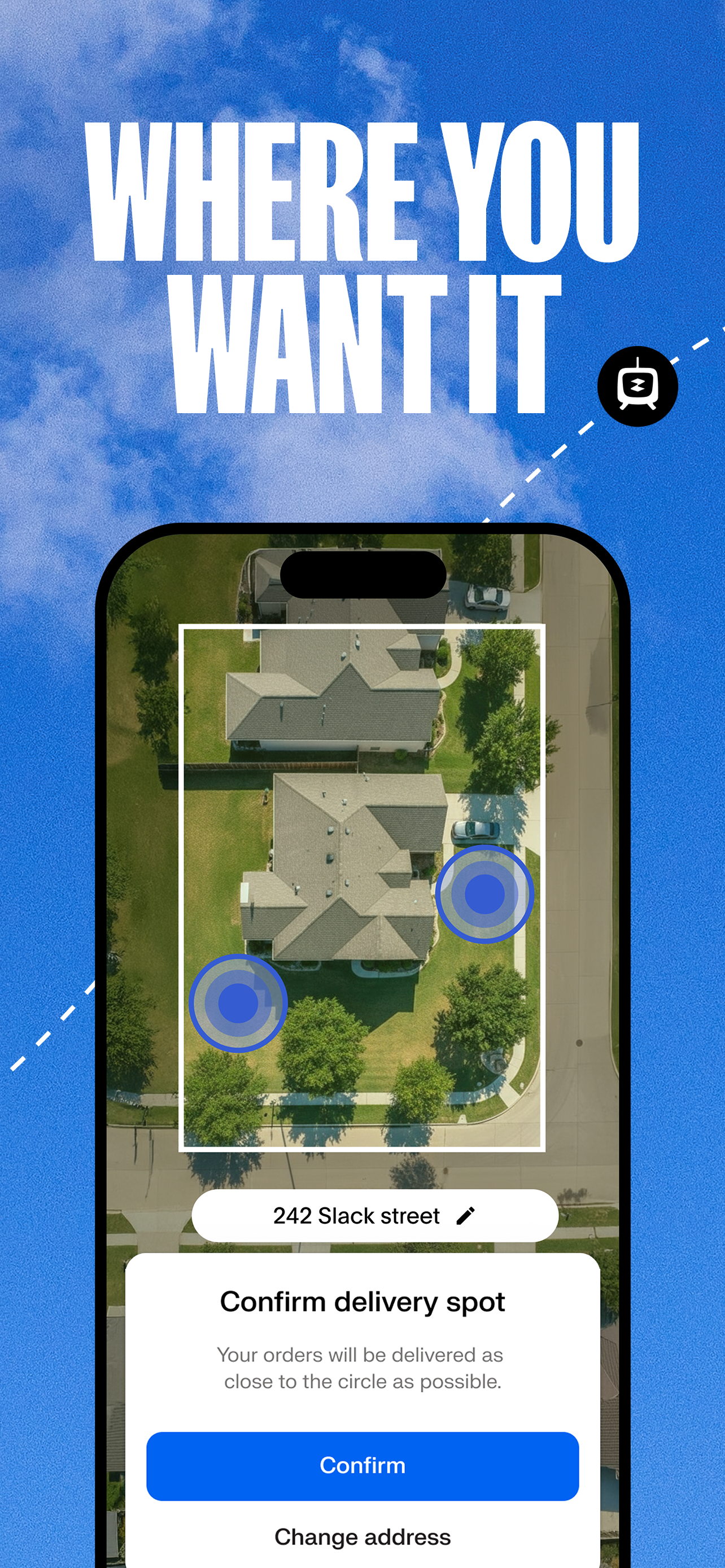 We had just installed our patio cover today so I forgot to choose a clear spot for the drop. It came by and tried to adjust the location but when my husband came out unexpectedly as it was dropping, he was apparently too close and it pulled back up and left. The delivery status then came up delayed. I was notified it was launched again and delivered 20 minutes later. My location was less than 3 minutes away so it saved us a drive while we were entertaining. It was very nice to be able to watch football and wait for a cool delivery. Amazing!